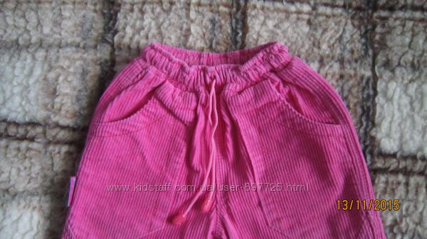 Штаны розовые вельветовые ТМ "Одягайко" УкраинаШтаны в идеальном состоянии, одели несколько раз, быстро выросли. Пояс на резинке и шнурке, впереди и сзади по 2 кармана.