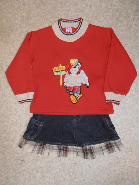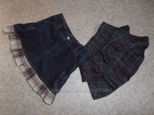 Юбка джинсовая с оборкой в клеточку. Рост 116см, мы носили при 104см. Длина 29см, ширина в поясе (есть утяжка) 27см. Подарок при покупке кофты.