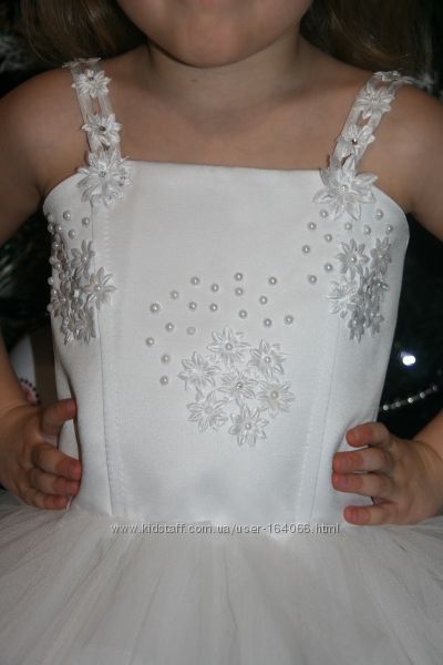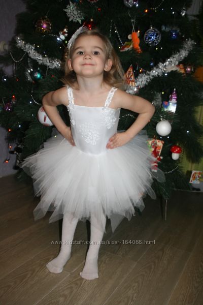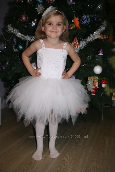 Платья "СНЕЖИНКА" ( юбка пачка, корсет на молнии +шнуровка.) Бретельки по переду корсета пришиты, а по спинке вы пришиваете сами, так как высота плечиков у каждого индивидуальны. В комплект идет повязка со снежинкой,а так же перчаточки,есть чешки 15см.И все это за .... 200грн