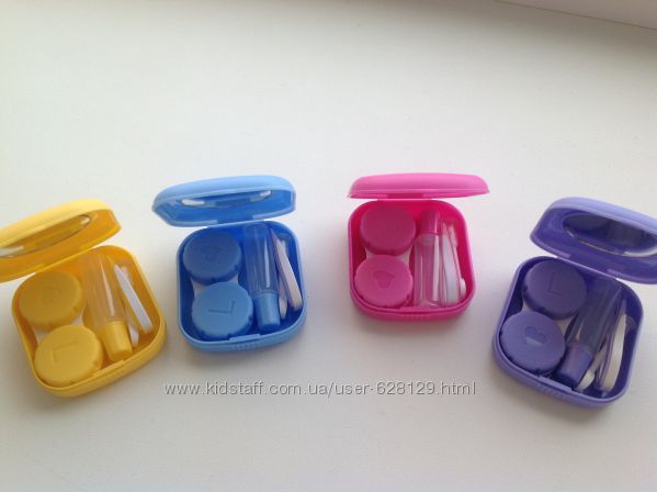 Дорожные наборы разные варианты и разные цвета: внутри крышечки зеркало, состоит из: контейнер, пузырек для раствора, пинцет, присоска. Цвет голубой или розовый.
