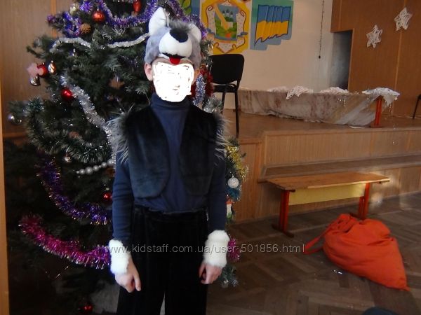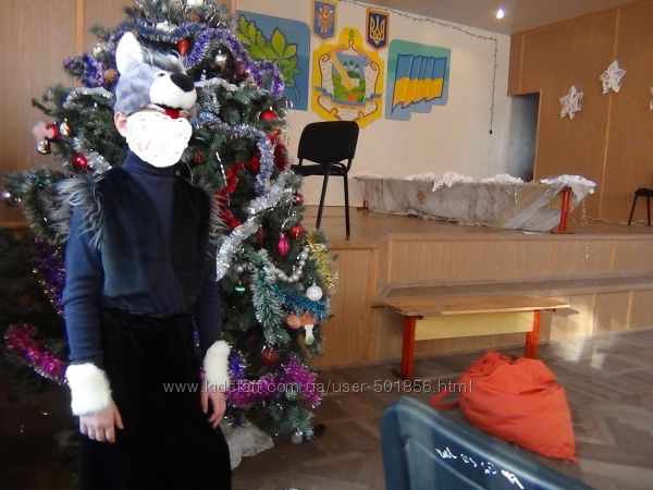 Прокат костюма волка. Костюм новый . Покупали для себя один раз одели на елку в школу.Сыну 8 лет . Но можно одевать и раньше и позже. Костюм состоит из жилетки обшитая мехом,черных широких штанишек книзу на резинке и голова волка на резинке. Одевается как шапка при носке не мешает. Сзади на штанах пришит хвост. На руках пушок на резинке