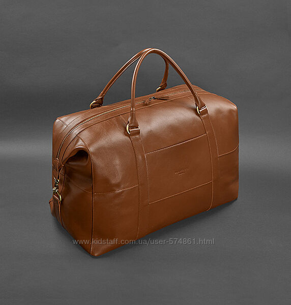 Сумка дорожная, спортивная кожаная светло-коричневая краст