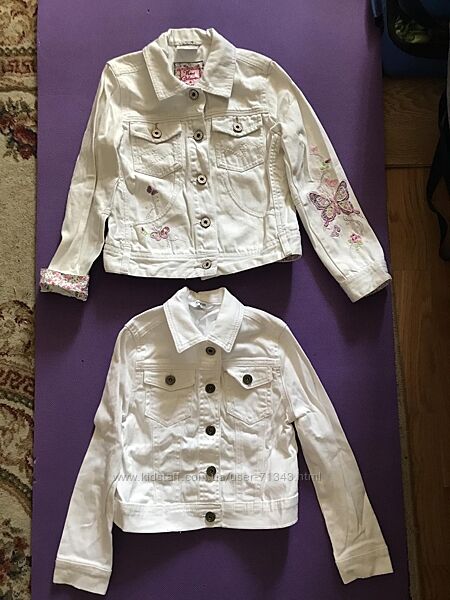 Джинсовка светлый джинс с кружевом 9-10л 50грн Во двор, не на выход. Длина от плеча- 41-41,5см, длина рукава- 47,5см, ширина - 35см, ньюанс- коричневые точки на рукаве, впереди, локте, сзади пятнышко, На воротнике рваности изначально так было.