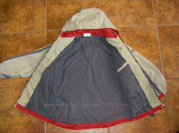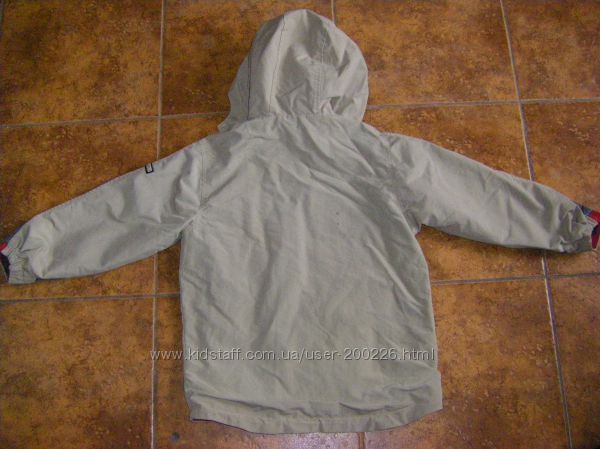 Демисезонная бежевая куртка-ветровка на рост 122-128. Привезена из Германии. Выглядит отлично, подойдет для мальчика 6-7 лет. Верх твердая плащевка с покрытием, подкладка тканевая сеточкой. Легкий капюшон прячется в воротник.