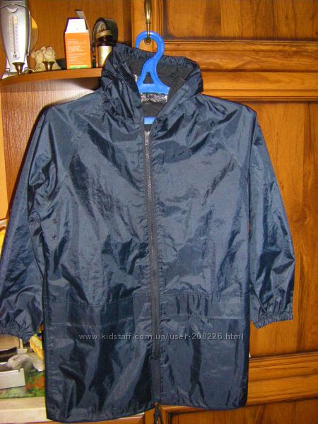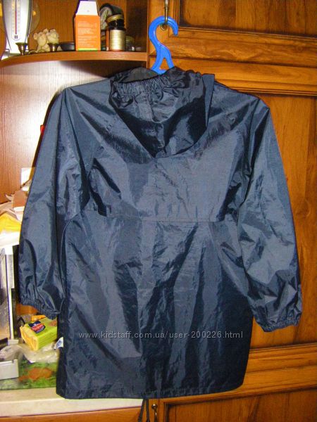 СИНЯЯ Симпатичная ветровка-дождевик НСХ, европейское производство, в очень хорошем состоянии, верх плотная плащевка, ткань-сеточка внутри. На ребенка 8-10 лет, рост 134. Не утеплена. Легкий капюшон прячется в воротник. Очень выручила в походе. Выглядит идеально!