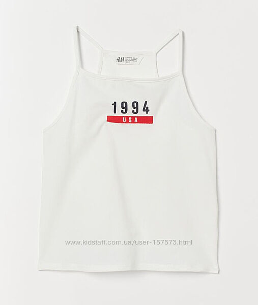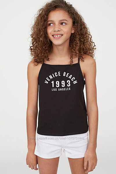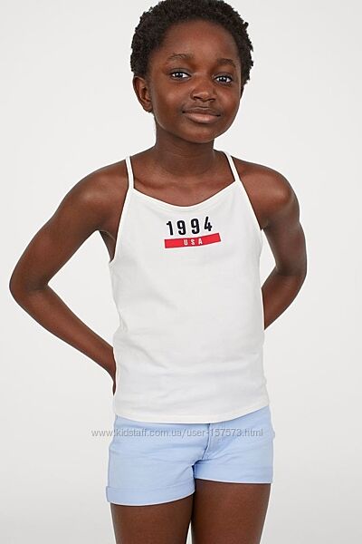 Дитяча майка Топ на дівчинку. Майка із м´якого трикотажу з принтом. Вузький крій зверху і дуже вузькі бретелі, а також спинка-борцовка.H&M