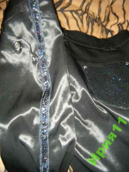 Описание:стали маловаты)..на рост до 166см, посадка- ближе к низкой, Об- до 101см..сбоку, вручную пришита тесьма с пайетками (так было изначально, при покупке в Аукро)..