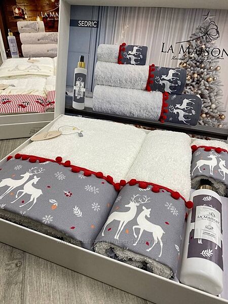 Новорічні рушники в подарунковій коробці La Maison - це високосні махрові набори , які мають в складі 100% натуральну бавовну. Приємним доповненням є аромат для текстилю, який також входить до комплекту.