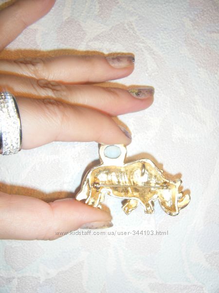 очень оригинальная, необычная, универсальная брошь-подвес НОСОРОГ..камешек-самоцвет, точное название не помню, к сожалению, т.к. покупала давно..Следов носки нет, состояние новой..Очень оригинальный и для подарка)..Без возвратов.