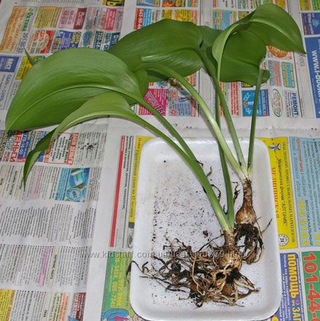 Если при пересадке делили один большой куст на несколько более мелких, то каждый из полученных экземпляров высаживают в посуду, обеспечивающую минимальный простор корневой системе. Через 1-1,5 месяца после посадки из луковицы показываются верхушки новых листьев. В этот момент начинают подкормку (один раз в 2 недели, чередуя минеральные и органические удобрения).