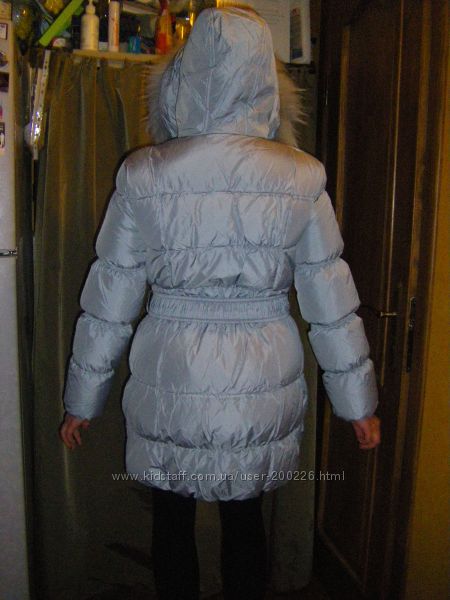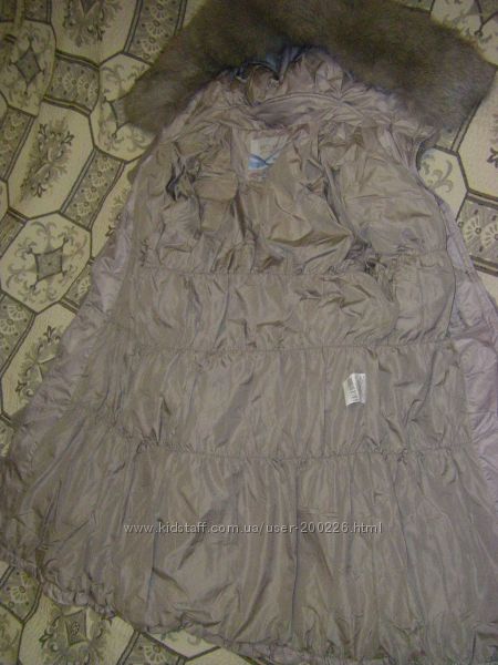 Размер С. Куртка-пуховик на женщину или подростка. Наполнитель натуральный пух, натуральный съемный мех. Тянется и сидит по фигуре. Удачный фасон, прочная непромокаемая ткань верха. . Длина рукава регулируется, делается короче.