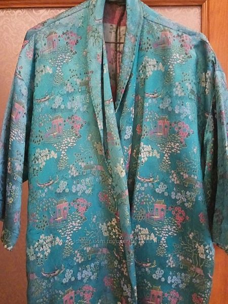 Прокат кимоно, вышивка натуральный шелк, цвет бирюза, передан на фото