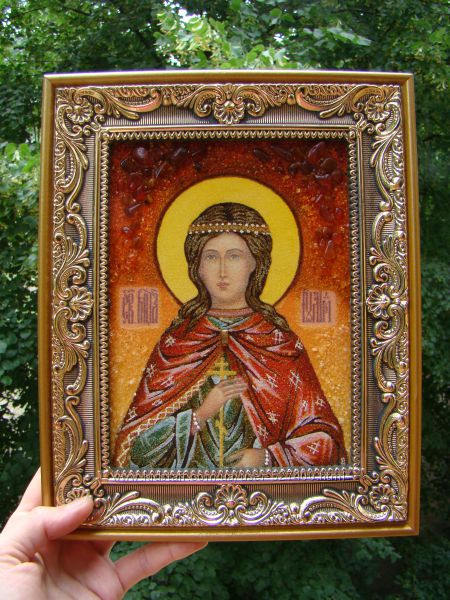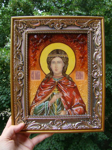 Подробное описание: Святая Юлия именная икона из янтаря ікона з бурштину