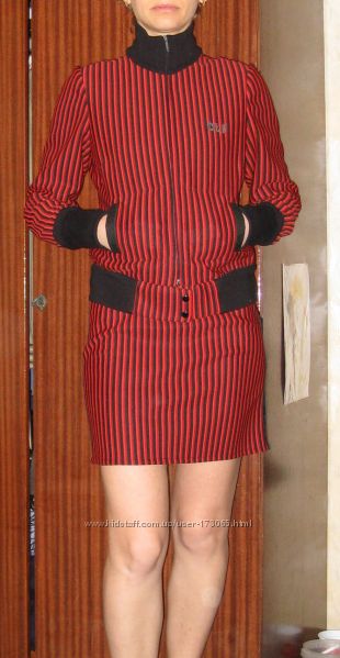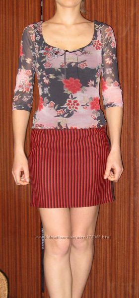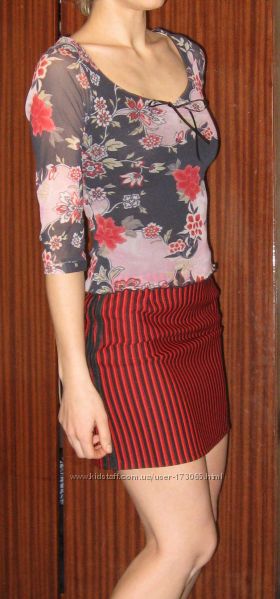 продам очень стильный костюм. кофта и юбка на молнии. на кофте карманы и вязанные элементы. на карманах и юбке нашиты кожаные вставки. размер С .состояние идеальное,продается еще кофточка-сетка с модным принтом цветов, снизу черная подкладка- она не светится, размер С, состояние идеальное, цена 45 грн
