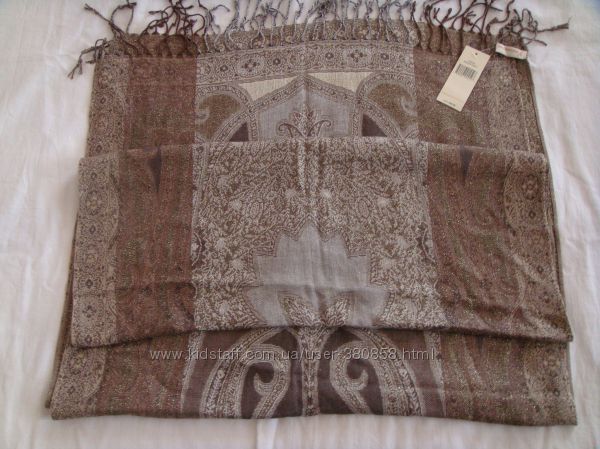 Фото 6 -89% вискоза , остальное люрекс,пэ. Очень мягкий и красивый. 200 х 55 см. Цвет - коричневый, бежевый, золотистый. С люрексовой нитью.