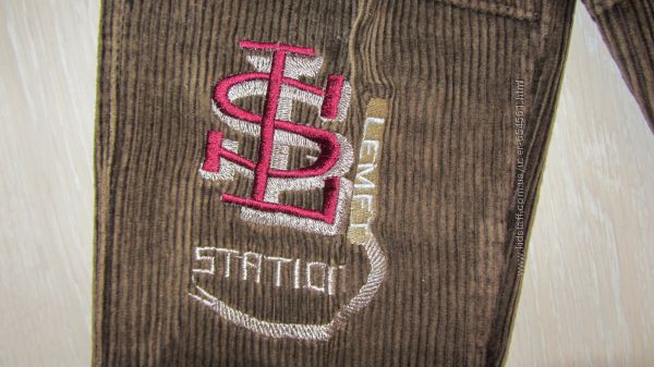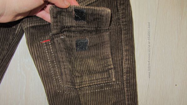 Штаны на мальчика, примерно на 3 года, ростовка - 98 см, полномерные. Есть возможность подвернуть штанину на 4,5 см. Вельвет средней грубости, на весенне-осенний период. Декорированы вышивкой на правом колене. Спереди 3 кармана (2 вверху и 1 на уровне колена - застегивается на липучку), 2 кармана сзади. Пояс - резинкой, есть лямки для поска. Под поясом есть ширинка с молнией.Замеры: длинна - 56 см, возможность подворота штанины - 4,5 см, шаговый - 35 см, обхват талии - 44 (+12) см, высота посадки впереди - 24 см, сзади - 25,5 см.