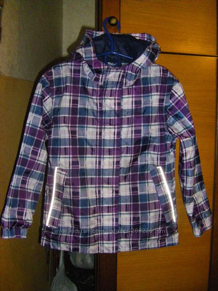 СИРЕНЕВАЯ в клетку Невероятного качества куртка-ветровка-дождевик Crivit , на 7-8 лет. Легкая демисезонная курточка, верх плащевка, подкладка сеточка. Идет на рост 122-128. Защищает от дождя и ветра. Капюшон не снимается. Двойная планка молнии. Прячется в кармашек на спине, трансформируется в аккуратную сумочку.
