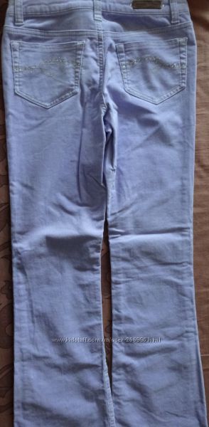 Пр-во - Гонконг, состав - 98/2 (хлопок/спандекс). Чуть клеш внизу, стразы на карманах и пуговице, без резинки в талии, мягкие и не плотные. Длина - 87см, длина штанины по внутреннему шву -65см, ПО талии -31-32см, ПО бедер -38см. 390грн.