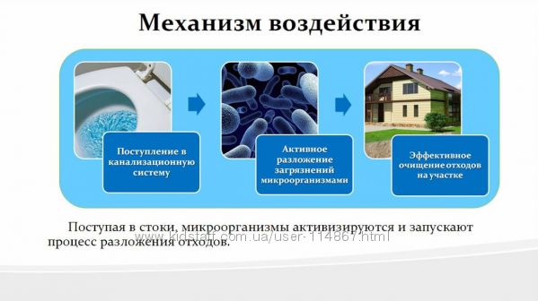Благодаря способности микроорганизмов, находящихся в составе препарата, расщеплять органические соединения, жиры и прочие отходы стоков, препарат является уникальным средством для удаления различных видов загрязнений.