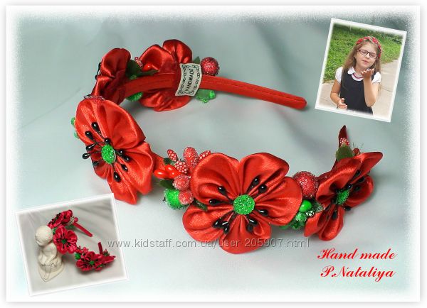 Продам готові або виготовлю на замовлення прикраси в стилі канзаші із атласних стрічок. Дизайн та колір можна змінювати. Можливі варіанти кріплення: резиночки, шпильки, стріли, шпильки-автомати, обручі.Кольори виробів можуть бути яскравими, насиченими чи спокійними та стриманими за відтінками. За формою - об´ємними, складними та помітними або ж ніжними та акуратними. Варіантів дуже багато. Так що вибирайте, виникають питання рада допомогти!
