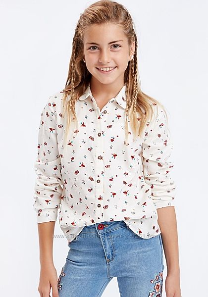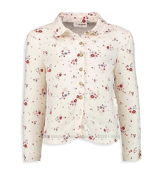 Блузка-на резинцi-122-140см-Комiр/Принт Зимовi квiти-Блузки-Waikiki-6-12лет
