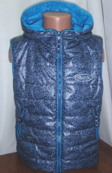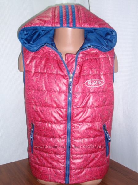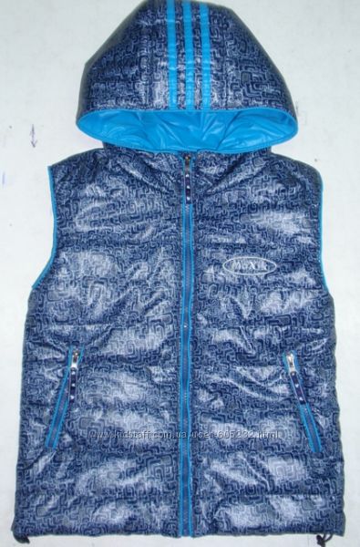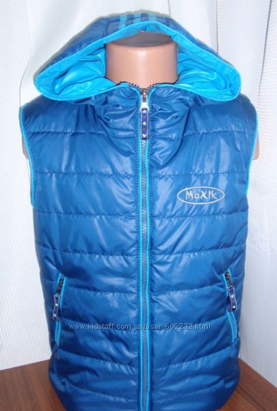 Теплый жилет с капюшоном на молнии из непромокаемой плащевки для мальчика и девочки