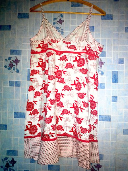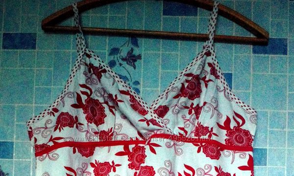 продам,платье-сарафан,трикотаж, хлопок. сарафанчик не приталеный, вытачек нет, фасончик - трапеция прямо от красной линии под грудью. размер указан 48\50 европейский, значит наш будет 52\54. мерочки: пог - 50 см, между подмышками, под грудью - 50 см - полуобхват, поб - 62, и дальше к низу еще шире, диз - 96 см от плеча до низа. состав ткани: 95% хлопок, 5% эластан. стана-производитель - Индия. ткань хорошо тянется, подойдет и на большие параметры. 100% ОПЛАТА НА КАРТУ ПРИВАТБАНКА(С НАЛОЖЕННЫМ ПЛАТЕЖОМ НЕ РАБОТАЮ!) отправляю интаймом и новой почтой. Стоимость доставки указана приблизительная. Стоимость доставки вы оплачиваете сами при получении на новой почте, интайм по тарифам перевозчика. ТОВАР ВОЗВРАТУ НЕ ПОДЛЕЖИТ ,НАДЕЮСЬ НА ПОНИМАНИЕ.