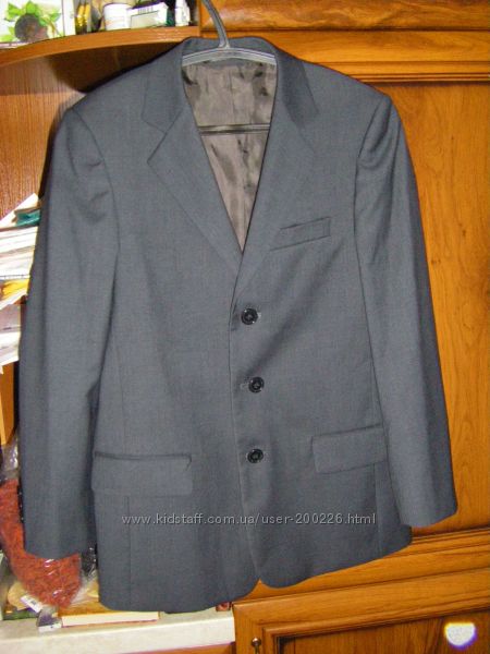 ф. 2-3 Рост 140-146. Новый серый пиджак Basic Line для школы стройному мальчику. На три пуговицы. Состав полиэстер с вискозой. Прост в уходе, не скатывается, отлично будет носится.