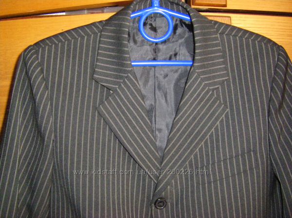 ф. 9-10 ЧЕРНЫЙ Школьный новый пиджак СА Германия, р.140-146 на мальчика, состав плотный полиэстер, хлопок, шерсть, полоска не такая частая, как на ф.1
