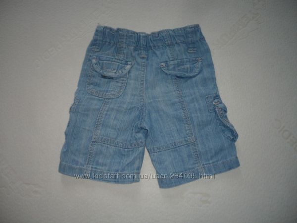 Великолепные стильные джинсовые шорты для мальчика. Б/у в отличном состоянии. Шорты с двумя прорезными карманами сверху и двумя накладными объемными карманами на кнопке, в районе колена выточки для удобства носки, сзади кокетка и еще два накладных кармана. Пояс сзади с вшитой резинкой и пуговицами для утяжки, спереди застегивается на крючок. Отличное качество!Состав:100% хлопок.