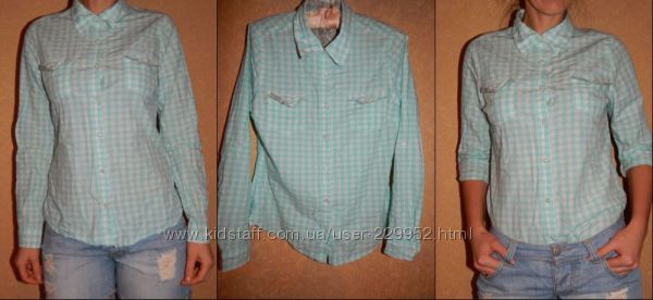 Рубашка в клетку мятного цвета размер 12, но идет на 8-10