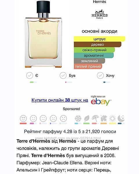 Подробное описание: Hermes Terre d´Hermes Туалетна вода розпив