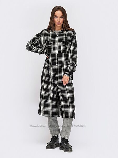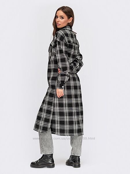 Стильное платье-рубашка в крупную клетку. Застегивается на пуговицы по полочке. Отлично будет смотреться как платье, так и как кардиган.