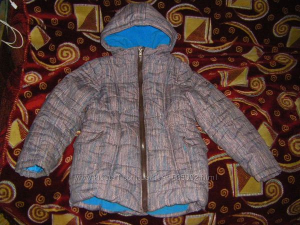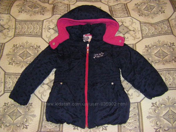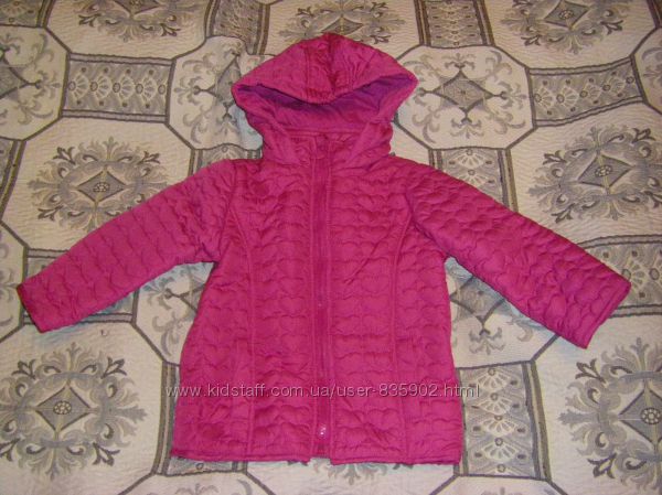 Теплая осенне-зимняя куртка. Для девочки 4-5 лет, рост 104-116. Верх твердая болоньевая ткань, внутри подкладка. На синтепоне, легкая и теплая. Капюшон не снимается, застегивается высоко, закрывает шею, растягивается на груди. Внутри рукава трикотажный манжет-резинка.