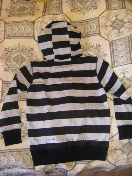 Трикотажная полосатая кофта на змейке Тополино серого цвета, из Германии. Для мальчиков и девочек 6-7 лет, рост 116-128. Трикотаж с начесом, хлопок.Рост 122 полосатая