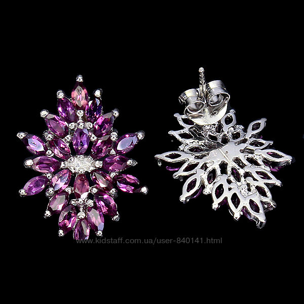 С3146Natural Rhodolite 23.0 X 21.0 MM. Вес 4.51 гр.Серебро 925 пробы покрыто белым золотом. Размер камней - 5.0 X 2.5 MM.Чистота - IF TO VVS. Обработка - UNHEATED. Происхождение - AFRICA.