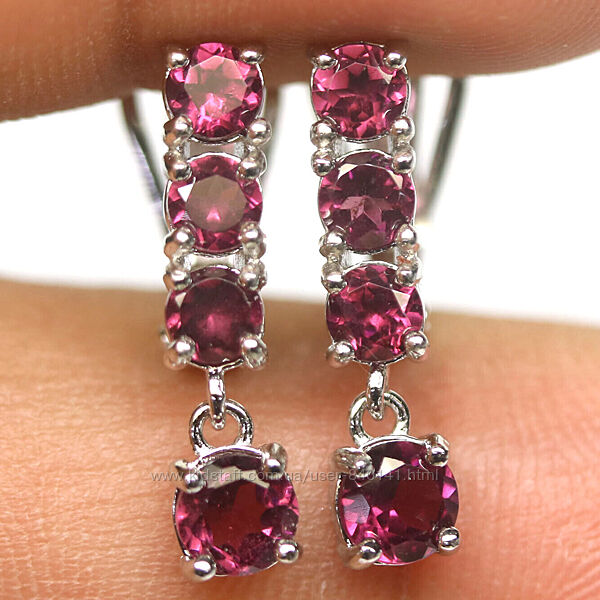 С3175Natural Red Rhodolite Garnet 4.8 x 20.0 mm. Вес 4,1 гр.Серебро 925 пробы покрыто белым золотом. Размер камней - 4.5 - 3.5 mm.Чистота - IF TO VVS. Обработка - UNHEATED. Происхождение - AFRICA.