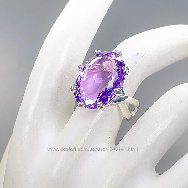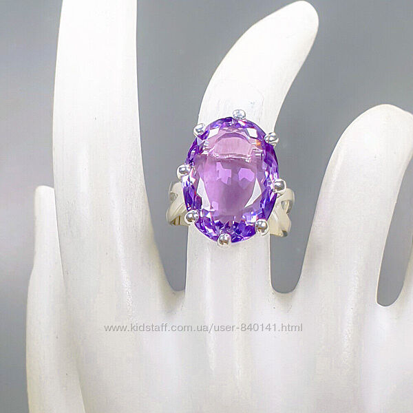 К3208Handmade! Natural Amethyst 16.0 Х 22.0 ММ. Размер 17.8. Вес 7.6 гр.Серебро 925 пробы покрыто белым золотом. Размер камней - 19x14 ММ.Чистота - IF TO VVS. Обработка - UNHEATED. Происхождение - BRAZIL.