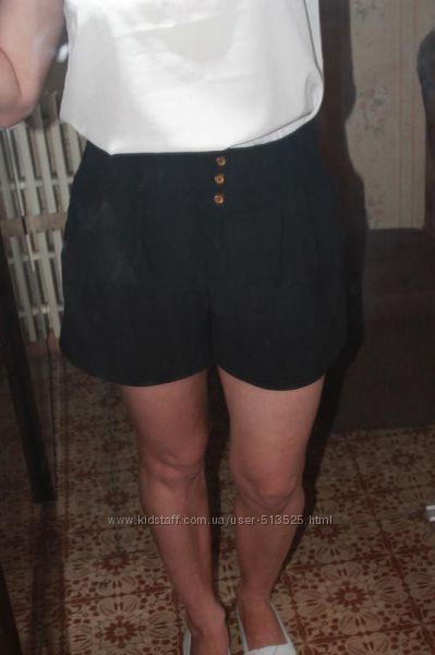 Фото 2-4 шорты с завышенной талией от Nev Look.В новом состоянии,без дефектов.Застегиваются спереди на молнию и пуговки(смотрится очень привлекательно)по бокам кармашки. ПОТ 38 см.,бедра любые так как в бедрах свободно по фасону. Фото 5-9 Шорты(F&F) ПОТ 37 см., бедра до 93 см., длина шорт 32 см. Возврата,торга нет!