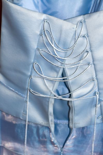 Верх – корсет на шнуровке (Фото 3), низ – красивые рюшики из органзы (Фото 5). На корсете голубой цветок (Фото 4, Фото 6)