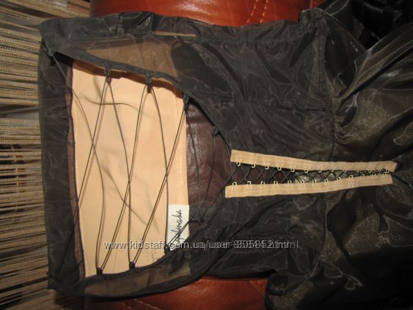 Платье от украинского дизайнера Оксаны Караванской. Размер m, или 42-44.Одето на мне, на параметры 86-68-96, по груди можно и больше, сзади регулируется от верха до талии. По бедрам больше 98см не войдет, ткань не тянется.