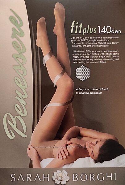foto 4 - SARAH BORGHI - Benessere 140 - 140den - прозрачные фармацевтические поддерживающие колготки плотностью 140 ден, с лайкрой, плетение "соты" с сильной градуированной компрессией(18-21mm/hg), анатомические трусики, хлопковая ластовица, плоский шов, с выделенной анатомической пяточкой. В колготках присутствует дренирующий косметический эффект Natural Leg Care - стимулирует кровообращение при застоях в кровеносных артериях. Активные ингредиенты - Ананас, Эхинацея, Конский каштан, Плющ, Сентелла, Раско. Размер 5 с 2мя швами сзади для полного комфорта. 80% полиамид и 20% эластан