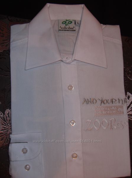 Фото № 2 - Хлопок, рубашка - слим, очень приятная на ощупь, тоненькая, с серебристой вышивкой на груди. Размеры: рост 128 - 158