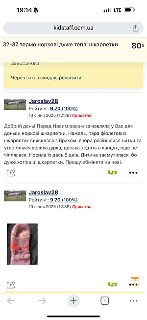 Гроші не великі. Мені не шкода їх вам повернути, але так не правильно. Пройшов насправді місяць як ви отримали посилку. Носили, стірали, порвали і тепер пишете що це брак…. На обмін і повернення є правила згідно яких це робиться.