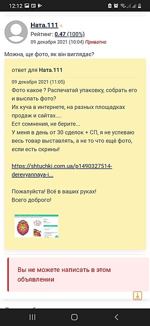 Благодарю бога, что отвёл от такого негативного и проблемного пользователя, якобы покупателя!