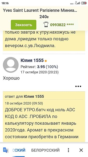 Не люблю скандалить. Но я должна объясниться и предупредить других что этот человек коварный . Не покупая у меня ,не держа парфюм в руках обвенил меня что я торгую фейками.