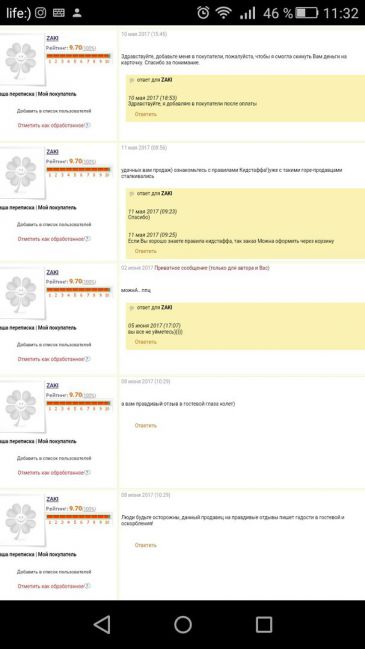 Вот такие сообщение пишет мне этот недопокупатель на протяжении двух месяцев