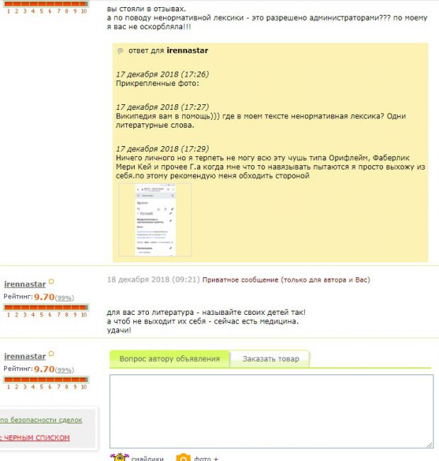 Я предложила работу в компании Орифлейм, на что сразу эта особа оскорбила меня, назвав "блехлом", вместо того чтоб как нормальные люди написать "мне не интересно". Затем начала расписывать что это слово литературное!!! и она может,я так поняла, всех полить такой бранью. И в конце она дописала, копирую: когда мне что то навязывать пытаются я просто выхожу из себя.по этому рекомендую меня обходить стороной