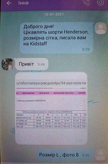 Дуже неадекватний продавець. На платформі Kidstaff не відповідає, відправляє в спілкування на viber. Як такого замовлення не було, тільки цікавилася розміром L і розмірною сіткою. Потім на Kidstaff скинула параметри, щоб продавець порадила який розмір підійде - мовчання. Довелося продовжити спілкування в viber.