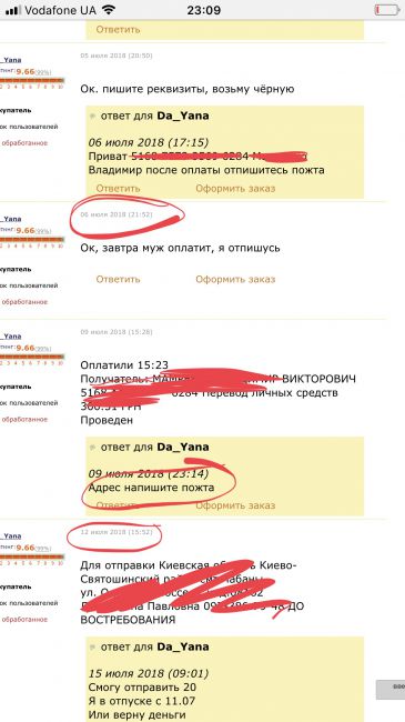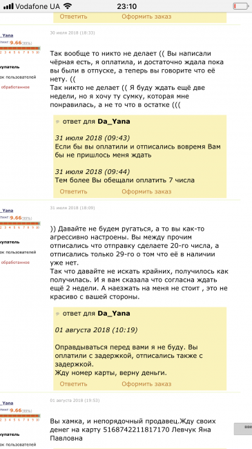 Меня начали учить как надо делать , упрекать в долгих ожиданиях. Хотя , покупатель напрочь забыла, что вся эта ситуация возникла из -за того, что она оплатила и отписалась об оплате с адресом, с задержкой в неделю. Очень удобный вид амнезии.